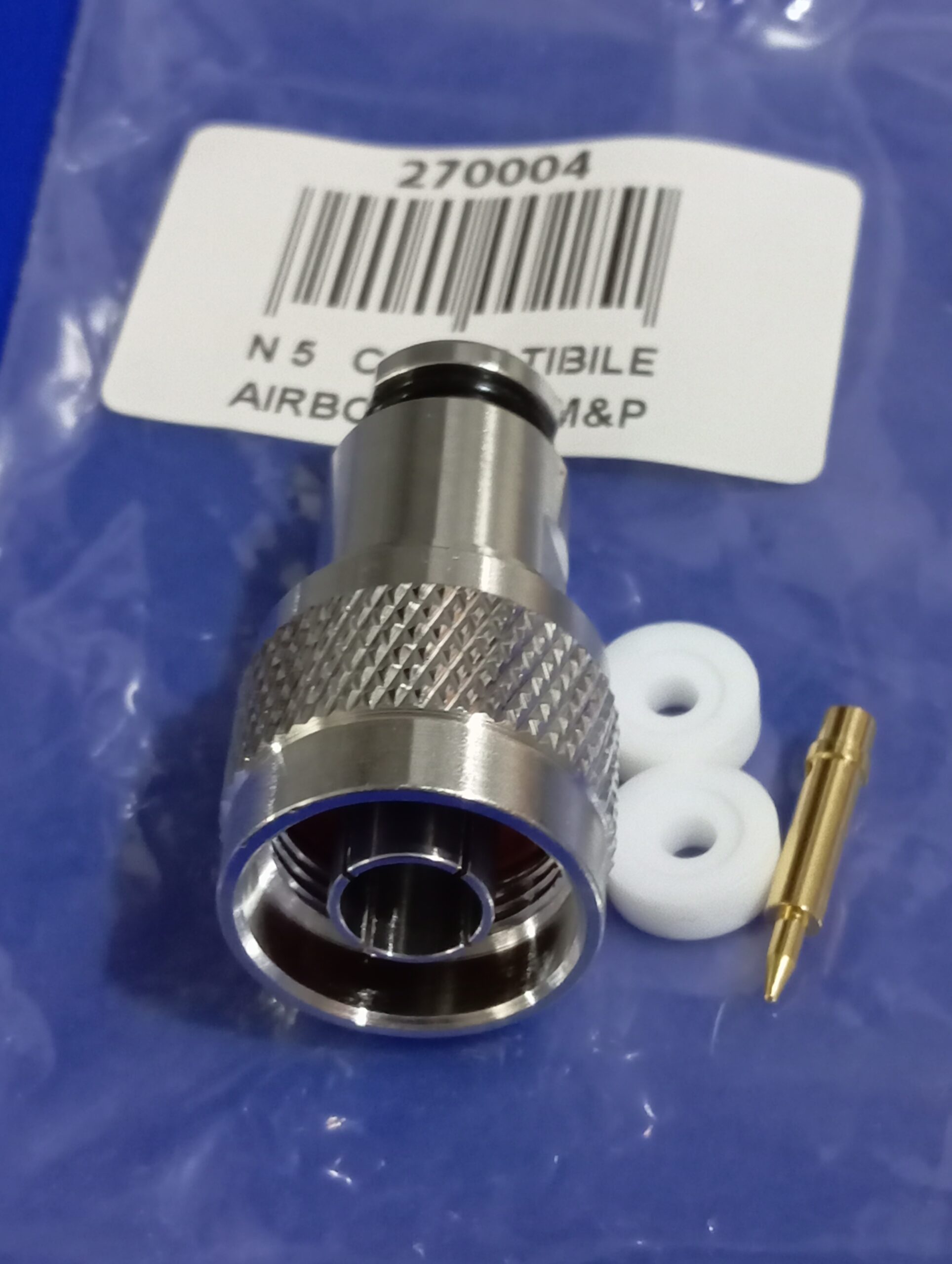 | Descrizione prodotto | connettore N COMPATIBILE per cavi da 5 mm.tipo AIRBORNE 5 Messi & Paoloni N per cavi da 5 mm Questo connettore è ben protetto dall’umidità, grazie ad un intelligente meccanismo di compressione interna. Nuova versione Evolution ! Connettore di tipo N maschio a saldare per il cavo Messi & Paoloni tipo: M&P-AIRBORNE 5